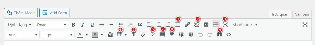Với tính năng shortcode này khi soạn thảo bài viết / trang mới trên thanh menu của trình soạn thảo bạn đang sử dụng sẽ có biểu tượng trái tim và bạn bấm vào đó để sử dụng shortcode, có thể tuỳ chỉnh được vị trí mặc định trong bài viết. (Hỗ trợ cả shortcode của Plugin khác) (8)